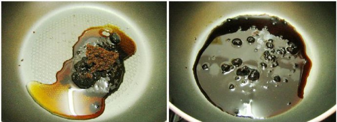 1、锅中倒入红糖和水,小火,慢慢的将其烧融;