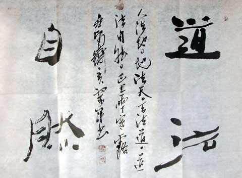 所谓“道”,就是老庄认为的宇宙万物所必须遵循的一种规律。“道”所反映出来的那种规律,道家思想认为就是“自然而然”,就是让任何事物都能自由自在地得以展示;就是对待任何事物都不勉强而为之,而必须要“顺其自然”,中国古代的老子把这些理论概括为“道法自然”四个字,所谓“人法地,地法天、天法道、道法自然”。道家的基本精神是自然无为,“道常无为而无不为”,所谓“无为”,就是顺应事物的自然发展趋势而不勉强妄为。老子思想认为“自然”是事物的理想状态,而“无为”则是保持这一状态的基本方法。“朴素而天下莫能与之争美”,“淡然无极而众美从之”,都表明美在于超功利的自然无为。