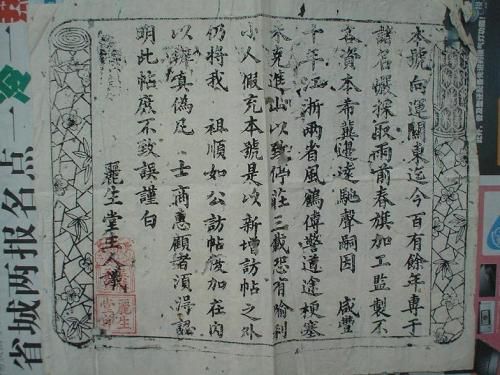 (清代徽州茶叶广告,俗称"茶单","茶票".)