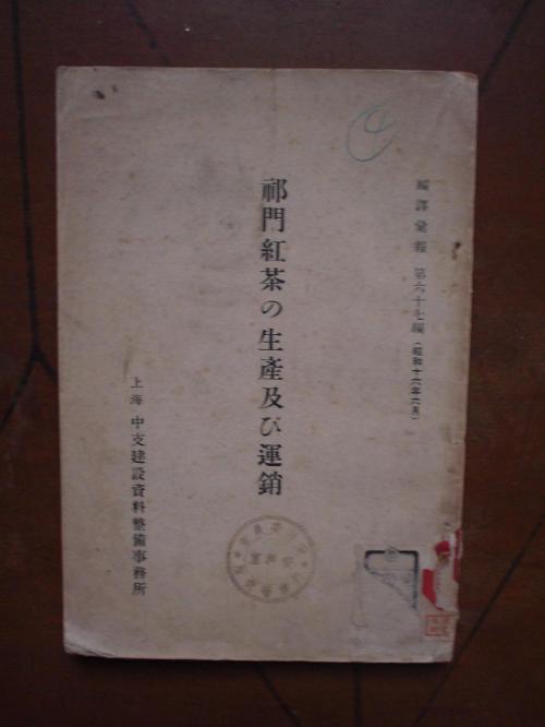 (抗日战争时期在中国上海的日本情报机构之一:"中支建设资料整备事务所"发行的有关于祁门红茶的书籍.)