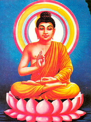 释迦牟尼在印度北部游历传教,一日于林中树下静坐,头上光环,巍巍无量,如日月之光,辉映四方。
