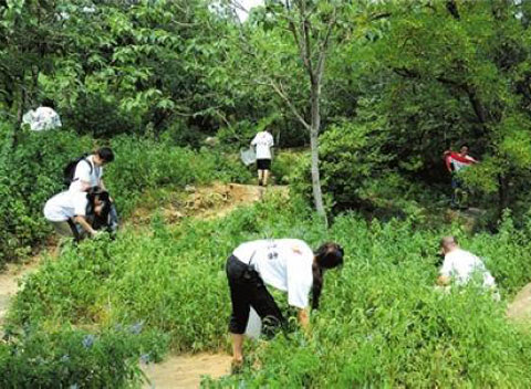 2010年6月24日,“还北京一片净土”公益环保项目在八大处正式启动,17位志愿者参加了首次垃圾捡拾活动。“用一个简单的弯腰,还北京一片干净的土地。”志愿者们发出呼吁:希望有更多的市民参与进来。