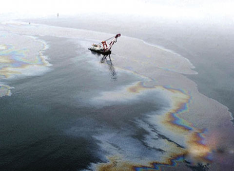 7月16日18时许,辽宁省大连新港附近中石油的一条输油管道发生爆炸起火,事故导致1500吨原油流入海洋,近百平方公里海域被污染,海面浮油最厚达一米。据称这次爆炸事故是由一艘外籍油轮引起,但是遭受直接污染的却是我们的空气、土壤、植被和海域。