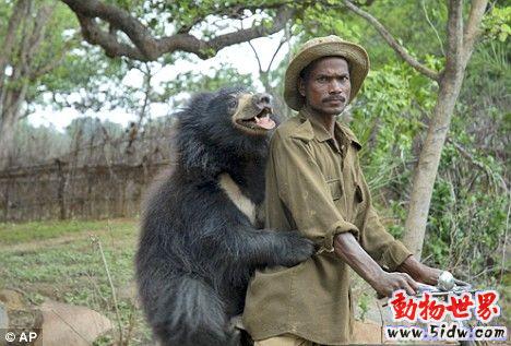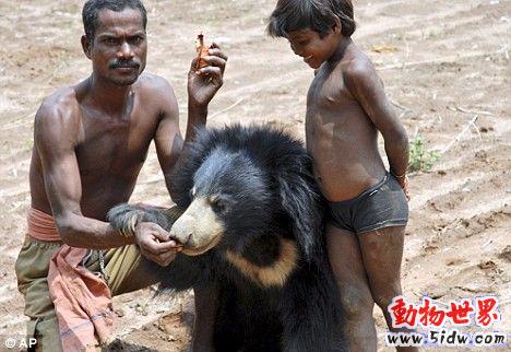 这位男子名叫摩·辛格·蒙达,今年35岁,是一个土著部落劳工,住在印度东部的奥里萨邦州州府布巴内斯瓦尔以北200公里的森林里。蒙达去年在森林里捡柴时发现了这头失去双亲的黑熊幼仔,好心的蒙达将它领回家,像对待自己的孩子一样地抚养它,并给它取名“王后”。小黑熊的到来给蒙达和6岁女儿带来了极大的抚慰,前年蒙达妻子过世笼罩的阴影一扫而尽,一家“三口”生活得其乐融融。