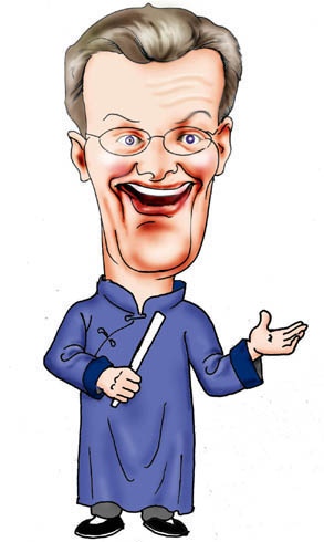 “我经常跟西方的媒体这么介绍,说中国是一个有着五千年文明历史的文明古国,中国有非常强的自我意识,自己的文化、自己的语言、自己的民族,自我意识是很强的。现在又是改革开放,又是跟国际接轨,与时俱进,都是这样一个趋势。也有很多人担心丢掉自己的东西,我们越来越国际化是不是会忘记了我们自己的东西。所有的,像希腊或者像其他的一些文明古国里面,都会有这样一个担心。如果说中国在开放的同时,发现不但是我们在变得越来越国际化,同时世界也在变得越来越中国化,那么我们在中间找到一个中西或者中外文化的结合点,大家都会觉得舒服很多。而我觉得这点从中国人的角度走向国际,变得很国际化的中国人很多,从西方来到中国变得入乡随俗,甚至是受了中国文化的熏陶,甚至中西结合,是从两个方向都在走,我只是从西方来到中国这么一个中西结合的代表。我觉得这是我所从事的所有的工作的一个核心,就是体现一个中西的结合,这里头产生很多喜剧,所以被称为笑星,但是也有喜剧以外的很多东西来做。”