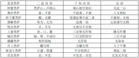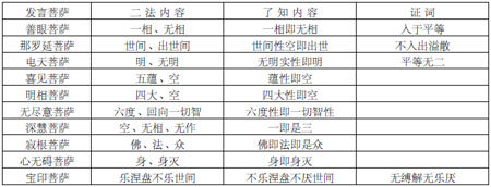 (三)不取不舍法。因二相相即,平等无二,不取不舍,证入不二法门。总共有十位菩萨,用此方法: