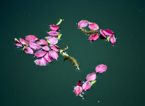 释济大师将水桶放到溪边的一块岩石上,弯腰从溪里舀起一瓢水说:“这是对施主的一句诽谤,企图是打沉你。”说着就哗地一声将那瓢水兜头浇在桶中的树叶上,树叶激烈地在桶中荡了又荡,便静静漂在了水面上。释济大师又弯腰舀起一瓢水说:“这是庸人对你的一句恶语诽谤,企图还是要打沉你,但施主请看这又会怎样呢?”说着又哗地倒下一瓢水兜头浇在桶中的树叶上,但树叶晃了晃,还是漂在了桶中的水面上。年轻人看了看桶里的水,又看了看水面上浮着的那枚树叶,说:“树叶秋毫无损,只是桶里的水深了,而树叶随水位离桶口越来越近了。”释济大师听了,微笑着点点头,又舀起一瓢瓢的水浇到树叶上,说:“流言是无法击沉一枚净叶的,净叶抖掉浇在它身上的一句句蜚语、一句句诽谤,净叶不仅未沉入水底,却反而随着诽谤和蜚语的增多而使自己渐渐漂升,一步一步远离了渊底了。”释济大师边说边往桶中倒水,桶里的水不知不觉就满了,那枚菩提树叶也终于浮到了桶面上,翠绿的叶子,像一叶小舟,在水面上轻轻地荡漾着、晃动着。