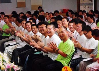 7月20日下午2:30, 学员坐定在法堂内恭候法师到来,许多义工也暂时放下手边工作,学习佛教徒对于财富的观点。法师以“鼓掌”的好处开场:“鼓掌是一种美德,是对对方的尊重和赞叹,也是鼓掌者低调做人的一种表现;送人玫瑰,手有余香,鼓掌能创造和谐的人际关系;能够让自己开朗轻松快乐;有句话‘常鼓掌可治百病’,手掌上有器官的投射点,有六条经络聚集于此,是高明的养生方法。从佛教的角度说,双手有各自的内涵:左手代表“自觉”,右手代表“觉他”,鼓掌,就能渐渐趋于自觉觉他。左手又代表“解”,右手代表“行”,鼓掌能解行并进,也是福慧双修。左手也表示“慈悲”,右手表示“智慧”,多鼓掌让你拥有智慧和慈悲。左右手分开,表示妄想执着,常鼓掌也能渐渐去除妄想执着。十指还表示十方,十波罗密,十法界。”经过法师一番开示,同学们变得开始对鼓掌很有兴趣,从此掌声连连。