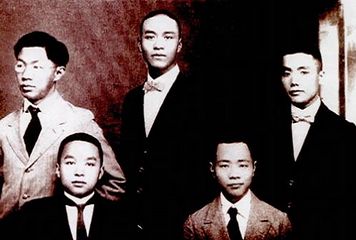 穆藕初资助五四运动学生领袖赴美留学时留影(后排右起:周炳林、段锡朋、罗家伦;前排:汪敬熙、康白情)
