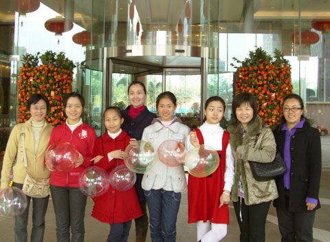 前年的春节,我们两家一起去逛花市。从北京回到深圳的我,见到何阿姨一家是多么开心啊!我们一起在美丽的大桃树下合影,在开得最鲜艳的迎春花前合影。您穿着鲜红的外套,脸上照样挂着那静静的笑容,人比花美。
