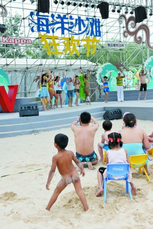 “城市里看海”总是一件极有诱惑的事情。朝阳公园海洋沙滩节上的沙子都是从海南运过来的,让人恍惚来到了三亚的海边。最好是在傍晚去,沙滩上的余温还在,晒得暖暖的。如果烈日当空的时候,沙子烫脚,无法在上面久留。
