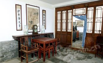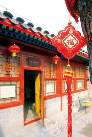 走进纪晓岚故居,小院里琴声朗朗。院子的南端是正厅,一进门便是等人高的纪晓岚画像,长须飘飘,面庞消瘦清峻。四周陈列着各种资料,画像的身后便是纪晓岚的半身雕像。小院的东西两侧分别有长廊贯穿,红油绿漆,雕梁画栋。小院的路呈十字型,中央是一座小假山,周围都是花草树木,草木间是孩童玩耍弹琴的雕像。东长廊上精美的牌匾上写着“馨蘭”二字。纪晓岚故居的产权归属晋阳饭庄,因此很多文物真迹并未收回,而且前厅后院过多的纪念品不免让人感觉商业了一点。