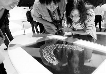 埃及馆中展出的国宝绝非只有雕像,还有一件精美的手工艺品,它是阿赫霍特普一世金项链,即是今天,我们仍然会为这件展品精美的制作工艺所震撼。据悉,它是由黄金和天青石为材质制成,诞生时期是在公元前1550年,距今已有3500年。虽然每件展品都价值连城,但是埃及馆在当初设计时就非常注重展品的摆放,其中几座雕像展品都是被直接摆放在游客面前的,除了一条红带子之外,游客与国宝之间并没有任何其他阻隔。马哥迪表示,这么做也是为了能够让中国游客更好的观赏这些国宝级文物的精美之处。