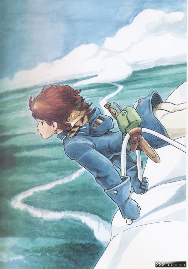 《千与千寻》里有一段摄走了我的魂魄,碧蓝天空下,茫茫大海里的火车,千寻和无面怪安静的坐在位置上,其他乘客造型类似照相式绘画里的影子,无比安静的上车,下车,或者等候自己的那一趟列车。这个景象让人强烈的想到人生,宫崎峻描画的往往不是列车在路上安静前行的日常景象,就是到站时的末日景象。路途似乎没有尽头,但却总会在什么地方与什么人相逢,所谓命运,不过如此。他的影片里总有御风而行的生灵,天与海分不清楚的界限,很难说宫崎峻秉持的是圣埃克修佩里一般的飞翔激情,还是如同押井守所说的,把神风突击队的精神贯入到他的电影里。但是好在至少人们可以在他的电影里回忆起童年的纯真,分享他对人类未来的思考。至少那些默默无言纯净世界的树始终在那里,为我们,也为所有人展开想像的翅膀。至少爱幻想的人可以乘上宫崎峻的火车,跟着他安静的看风景,眼睛悲悯。