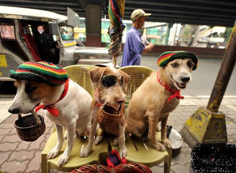 7月22日,在菲律宾马尼拉,小狗们被主人带上墨镜和帽子在大街上乞讨,为主人分忧。据调查,由于菲律宾经济不佳,78万户家庭经常挨饿。菲律宾政府表示将通过努力,控制饥饿人数急剧上升并帮助贫困家庭脱贫。政府已经承诺,将会给更多家庭直接发放救济金以助他们渡过难关。
