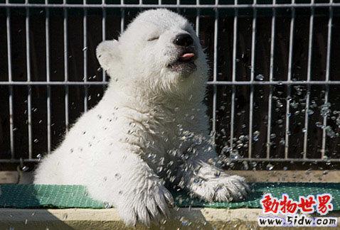 小北极熊弗洛克出生后不久就和母亲韦拉分离,因为韦拉总是把它叨在嘴里往地上摔。离开妈妈的弗洛克在饲养员的精心照料下正在茁壮成长。