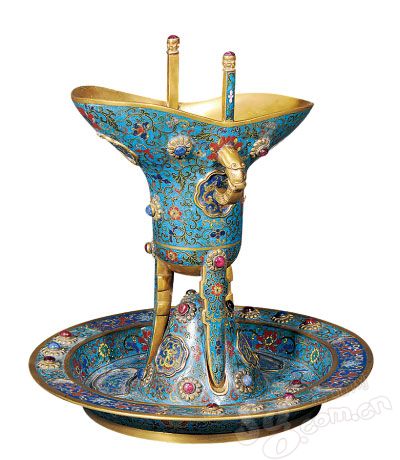 但无论哪种说法,景泰蓝最初是宫廷御用品的身份地位却是毋庸置疑的。有资料显示,这些掐丝珐琅器的生产和流传数量有限,而且多为皇室御用或仕宦商贾之珍藏。当时的工艺极其繁复,须经过锤胎、掐丝、填料(珐琅釉)、烧结、磨光、鎏金等多项工艺,每项工艺都有很高的要求,不可疏忽,否则就会报废,前功尽弃。尤其是造型奇特的掐丝珐琅器,如人物、走兽的瓶件等,制作难度很高,非一般工匠可以完成。而且当时的用料昂贵,其胎以铜胎为主,亦有用金、银为胎的,珐琅釉多系进口天然矿石、半宝石加工提炼而成,还须鎏金工艺,耗金量亦大。用料和制作工艺构成了它的成本,比之明清其他瓷器要高出数倍甚至数十倍。