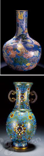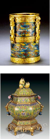 在清代的著录中大受好评,在收藏市场上,它们也是佼佼者。不过,到清末厚胎掐丝珐琅的制作工艺逐渐失传,迄今百年,我们在工艺品市场常见的现代景泰蓝制品,大都属于薄胎掐丝珐琅。