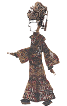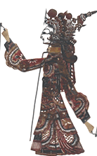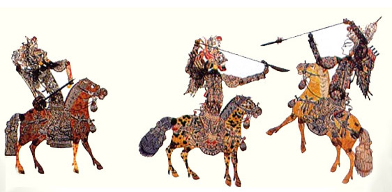 皮影人物造型,是按戏曲生、旦、净、丑的模式进行设计的。各行当脸谱和行头的程式化造型,源于舞台戏剧而又超越于舞台戏剧。