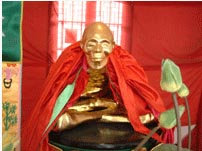 生于新罗国王族,俗姓金,号乔觉。唐高宗永徽四年出家后,即携白犬善听航海来华。至九华山,得闵公地建大道场。开元十六年圆寂,时年九十九岁,其尸坐于函中。