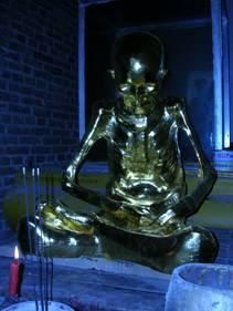 释海玉(1497—1623)住九华山山洞一百年整,未下山,未见人,未带徒弟,直至一百二十六岁,九月十四日上午,他把自己一百年历史写好,放在身边,就圆寂了。侍至明朝未崇祯三年,派兵部尚书王大人来九华山敬香,到东南第一山,当晚山头放光,一道白光照到东南山上的塔墓,东南方山上塔墓也放一道光,两光对照,兵部尚书连夜带人上山,此山无路无庙宇,只寻得山洞有一老人,已经坐化了。遗体是乾肉之身,兵部尚书检查遗物都已腐烂,但肉体还是原样,只是乾了,发现旁有所书血经和身世自传,方知离坐化时间已经有三年又九个月。