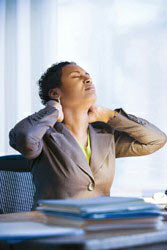 颈椎病的主要症状是头、颈、肩、背、手臂酸痛,颈部僵硬,活动受限。颈肩酸痛可放射至头枕部和上肢,有的伴有头晕,房屋旋转,重者伴有恶心呕吐,卧床不起,少数可有眩晕,猝倒。