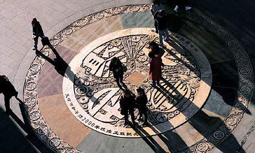 在天津商业街和平路上,有个名为“和平聚宝”的大型古钱币浮雕