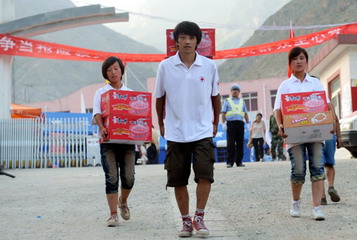 为了缓解严重缺乏的饮用水供应困难,你的志愿者伙伴们用稚嫩的双肩,用绳子从四、五公里外向城里转运,绳子勒在你们的双肩,却深深刺痛了我们的双眼。你和你们的志愿者伙伴们向所有参与救灾的人递出去你们自己都舍不得喝一口的矿泉水的时候,我和我的同事们心潮澎湃。13日,我们一位同事在前往物资分发点进行采访时,向两个小志愿者问路后掏出一块巧克力想表示感谢,他们坚定地谢绝了。他们不喜欢吃吗?不是,他们说:“我们有纪律,志愿行动,回答问路都是应该做的。”