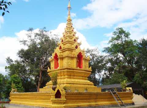 飞龙山白塔林,在云南景洪县大勐龙乡曼飞龙村后的山上,为小乘佛教建筑。该塔林始建于傣历565年(公元1204年),塔林由大小9座白塔组成,巍峨参差,耸入云天,为当地一大胜迹。这9座塔均建在高4米的圆形基座上,中为主塔,高达21米,雄伟挺拔。其余8座小塔分列八角,高10米,形似莲花,宛似群星拱月,壮丽奇特。