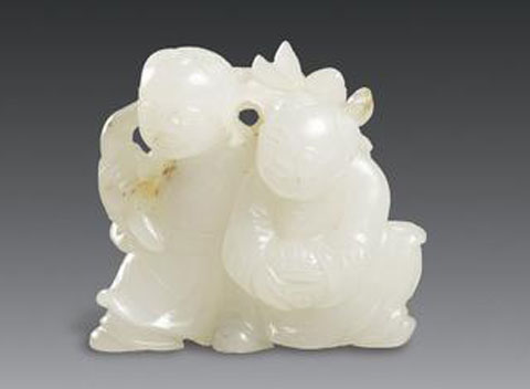 大家可能知道,我们如果到过苏州的寒山寺,可以看到两个,一个是拾得,一个是寒山。我们民间结婚的时候,也会贴一个年画一样的,做一个和合二仙的一个画,讲百年好合。去年台湾的新党主席郁慕明到我们学校的时候,我们送给他一幅和合二圣的画,这是徐悲鸿之子徐庆平所做的一幅画。和合的意思是这样的,二兄弟,大哥到边疆服兵役,他的父母非常担心这个儿子到底会怎样,所以整天的惦念,有时候还会哭泣。这个弟弟就对父母说不要着急,我到边疆去看一下就回来,看一下哥哥还在不在,一天去一天回来。弟弟看到哥哥很健康,这里面表明了父子之情还有兄弟之情。有人可能看过和合,也就是说一个很亲近的孩子,手里抱着荷花,还有一个抱着一个大盒子里面飞出五个蝙蝠,有人说盒子里面有金元宝,飞出五只蝙蝠,象征着五种幸福,也就是祝福的意思。