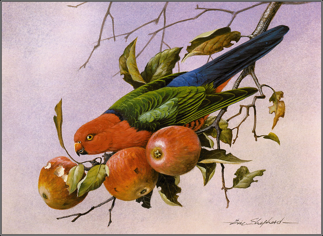 鹦鹉飞走后的几个月,有一天,那座大山失火,四面都燃烧了起来。鹦鹉远远望见,想到那些友善的百鸟群兽会被烧死,很是悲伤。就入江水,用翅膀取水,再飞上空中,飞到那座大山。之后,用翅膀沾的那点水洒下来,想要灭掉大火。就这样,飞来飞去,飞来飞去。
