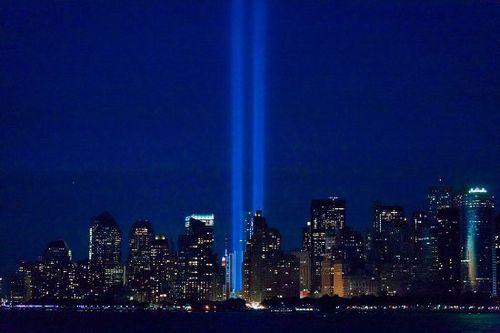 为了纪念9·11事件,当天晚间两个蓝色光柱从世贸遗址附近射向夜空。而当时正逢一支由加拿大向加勒比海地区迁徙的大规模鸟群途径纽约。报道称,它们并不经常飞越纽约上空,候鸟上一次迁移路线在9月11日当天经过纽约上空还是在2004年的事情。