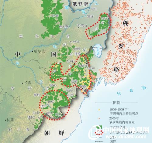 在如此短的时间内,究竟是什么样的“魔力”给这个族群以毁灭性的打击?首先是野生东北虎栖息地的丧失和恶化。由于各种发展的需要,大面积的森林被砍伐,东北虎生存家园遭到前所未有的破坏。自上世纪50年代至今,也就是近60年的历史瞬间,东北虎栖息地的面积就急剧减少了90%—95%。一只雌东北虎需要400—500平方公里的森林面积才能正常生活和产仔,20只雌性老虎才能组成一个可长期健康繁殖的种群,这个族群需要近1万平方公里的连续森林。