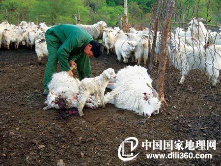 由于缺少猎物,饥饿的东北虎会攻击森林附近村庄的家畜,给农民造成损失,这是人虎冲突的重要体现。这位农民饲养的羊就被东北虎当成猎物了(摄影/王来会)