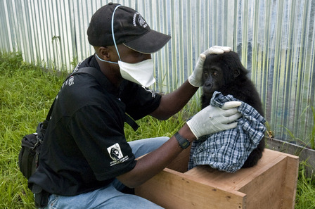 在传出刚果东部有人售卖被捕获的幼年猩猩的流言之后几周,“猩猩医生”(MGVP)成功地根据一些零碎的信息,顺藤摸瓜,发现并解救了一只一岁大的猩猩。