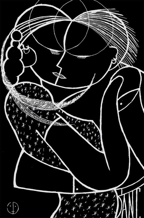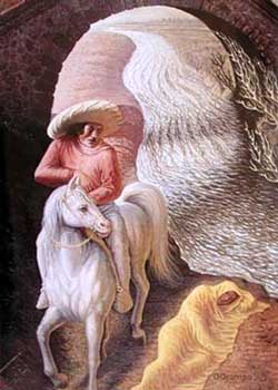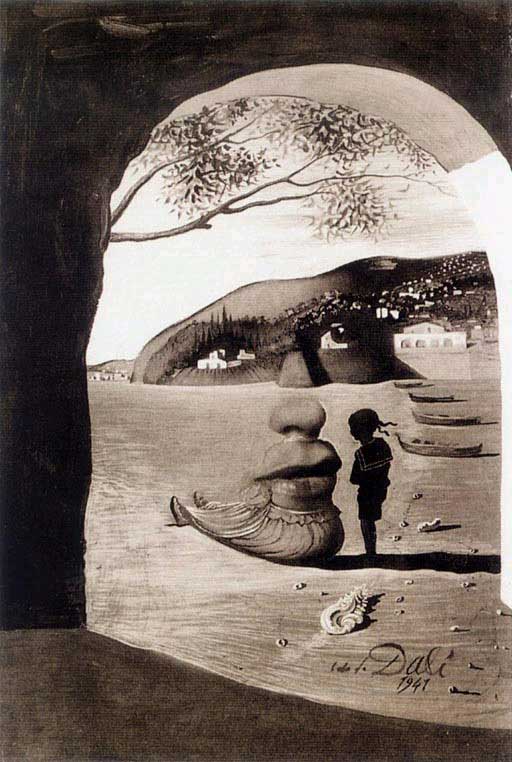 你会看到一张女人的面部,但是,你仔细看你却会发现:只是两匹马在跳起嘶叫,女人的眼睛是马蹄,鼻子是一只鹰,而嘴唇不过是远处的山。画家对女性内心欲望深刻挖掘,那份狂野、奔腾和浩然的气魄让观者备受震撼。