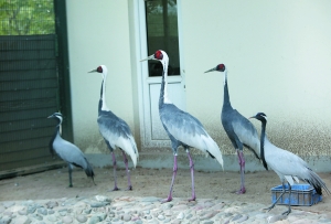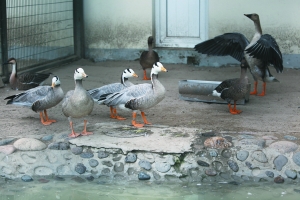 在附近的水禽笼舍,记者就更疑惑了。在这里豆雁、鸿雁、斑头雁迈着小短腿悠闲地踱步;活泼的赤麻鸭、斑嘴鸭、翘鼻麻鸭、鸳鸯在地面和水池之间蹿来蹿去;白鹳、黑鹳漠然地卓然独立;而美丽的蓑羽鹤、白枕鹤排着松散的队伍款款而行……同样的,这些水禽也无一例外都来自于野外救助。