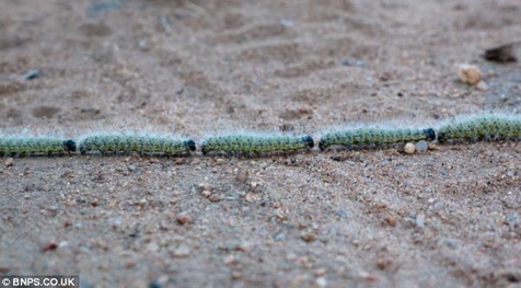 杰米-鲁尼今年38岁,来自英国巴克斯市小镇海威科姆,供职于一家网络销售公司。这一天,杰米与别的游客一起乘坐吉普车在南非著名的克鲁格国家公园游玩,但行驶过程中司机突然刹车,他们不知道发生了什么事情,纷纷下车一探究竟,结果就看到了这不可思议的一幕:大约136只毛毛虫首尾相连,一字排开横穿一条公路。