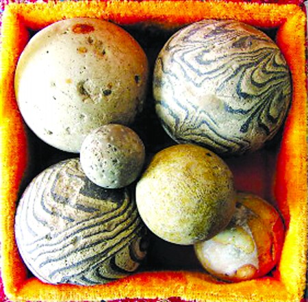 据姜爱国介绍,这些捶丸均是从山东东平县州城(宋代被称为郓州,为当时著名的文化古城)收集而来。其实在十几年前他就已经发现了这种球,但一直不知道是什么,起初以为是古代握在手中的健身球,但在2005年的时候,他看到了故宫博物院杨静荣发表的一篇文章,才知道可能是捶丸。