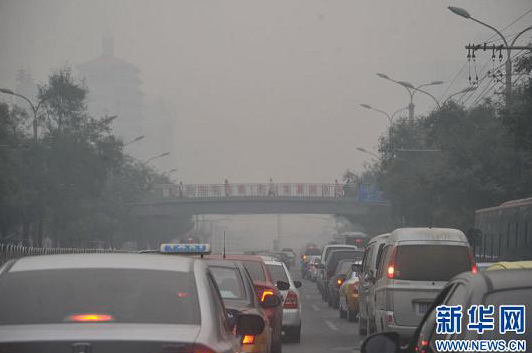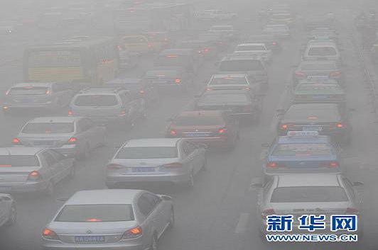 10月9日晨,车辆在京城雾气茫茫的道路中缓慢行驶新华社发(高新生 摄)