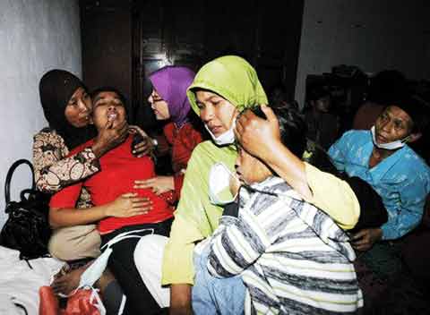 26日傍晚,梅拉皮火山在30分钟时间内先后3次喷发,火山灰冲上高达1500米的空中。摄氏500多度高温的火山熔岩流向山坡,致使当地大量房屋毁损。火山喷射出的灰尘和浓烟则弥漫在整个爪哇岛上。