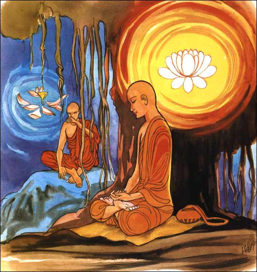 如果继续修下去,修行者会发现心识还在那边产生作用。而生起讨厌之心,因此想舍弃它,想进入无所有处定。那就是他认为:如果有一个地方完全没有心识作用,这种定才是最安稳,最快乐的。他就观想这种定,并非作“空”想,也不是依识,而是他一心念无所有。在定中,他或认为他没有想了,但实际上并非如此,而是他的心念非常细微,意识中的法尘就是无所有的法尘。