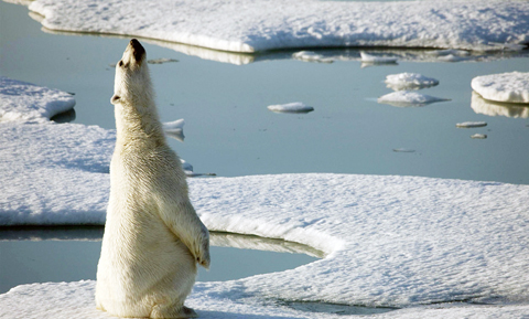 北极的“原住民”们已经在遭受冰川消融造成的生存危机。克雷峡外的凯恩海湾,一头北极熊蹲在漂浮着的松散海冰上。没有海冰,北极熊就无法生存。他们需要利用海冰来抚养幼仔,四处漫游,并以此为平台捕猎他们的主要食物——海豹。