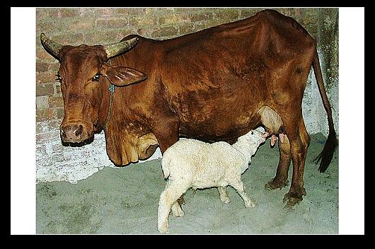 这只绵羊被一只拉布拉多犬抚养大,所以她一直以为自己也是只狗