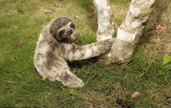生活在中美洲和南美洲雨林里的树懒通常体长只能长到不足2英尺(60.96厘米),寿命可达40年。这种动物因其动作迟缓而闻名,但是如果受到天敌威胁,它们的速度也会很快,甚至可达每分钟13英尺(3.96米)。树懒的大爪子使它可以生活在高高的树顶上,很多整日倒挂在树枝上,吃、睡,甚至生育后代都在树上。虽然这种动物的懒名声早已尽人皆知,但是科学家认为它们每年仅睡大约10小时。