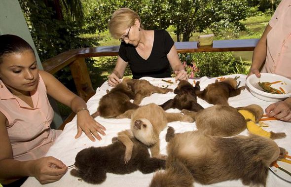 不过这个可爱的小家伙只是该避难所需要悉心照料的百只树懒中的一只。它们中有些还没有人的手掌大,要是让其呆在野外,它们根本无法生存下来。但是已婚夫妇路易斯-阿洛尤和朱迪-亚维-阿洛尤创建的该中心,使它们重获了新生。18年前邻居把一只树懒孤儿送到他们家门口,让他们萌生了建一座树懒避难所的念头。从那以后,这对夫妇又收留了很多需要照顾和关心的其他树懒。