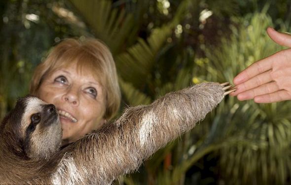 温顺:树懒的平静环境,意味着它们中的很多能经常与前来该避难所游览的游客进行互动。