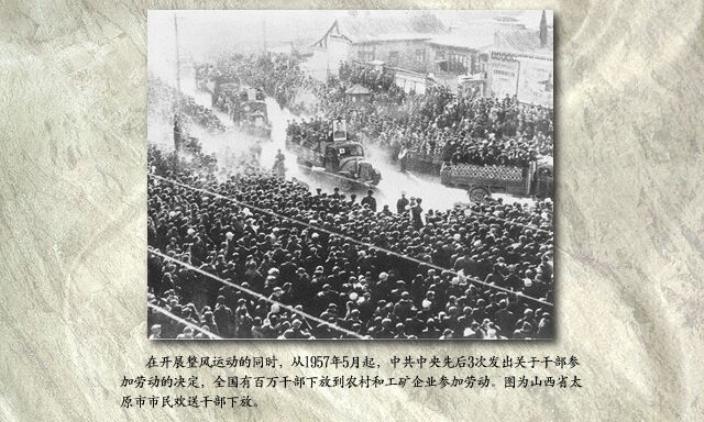 ![]() 1950年:斗地主 ![]() 1951年:农忙时托儿所 ![]() 1952年:飞机喷撒“六六六”药粉,灭杀蝗虫 ![]() 1953年:生产合作社 ![]() 1954年:毛泽东写选票 ![]() 1955年:北京青年赴黑龙江垦荒 ![]() 1956年:天津青年资本家高呼“积极接受改造” ![]() 1957年:整风运动,干部下放 ![]() 1958年:大跃进;积肥万担,亩产万斤 ![]() 1959年:毛 泽东批评彭德怀“右倾”错误 ![]() 1960年:抢救61名食物中毒民工,传为佳话 ![]() 1961年:纠正错误,农业生产得以恢复、发展 ![]() 1962年:周恩来说,知识分子不是资产阶级 ![]() 1963年:向雷锋同志学习 ![]() 1964年:焦裕禄,县委书记的好榜样 ![]() 1965年:“四清”运动 斗争“富农分子 ![]() 1966年:红卫兵捣毁寺庙 ![]() 1967年:清华大学红卫兵批斗刘少奇的夫人 ![]() 1968年:知识青年上山下乡 ![]() 1969年:刘少奇去世 ![]() 1970年:张志新被捕 ![]() 1971年:林彪政变失败出逃,机毁人亡 ![]() 1972年:尼克松访华 ![]() 1973年:江青利用小学生黄帅的信“批林批孔” ![]() 1974年:周恩来抱病出席25周年国庆 ![]() 1975年:邓小平复出 ![]() 1976年:十里长街 ![]() |