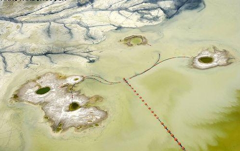 【巨大人工调色盘 】 这是燃煤发电厂的废料排放池。燃煤发电所排放的灰烬和烟雾都是有毒物质。另外,高浓度的的砷,杜松醇,铬,铅,硒,硫酸盐,硼等多种污染物也是燃煤发电的排放物。大自然中的有害辐射物,主要来自于燃煤发电厂。