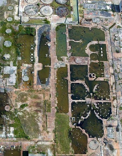 【完美花布 】 这是一个造纸厂的水流处理曝气池。该厂主要生产化妆面纸。在活水流向河流之前,该处理池以其特有的微生物分解出水中所含的有机木质纤维。这个曝气过程将会分解掉水流中的水粒子以向处理池当中的微生物提供氧气。